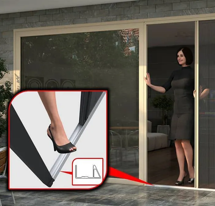 Ideal geeignet sind seitlich zu bedienende Plisseetüren, wenn es eng zugeht und wenn kein Schwenkbereich zur Verfügung steht. Eine Insektenschutz-Plisseetür braucht wenig Platz. Wenn Ihre Tür seitlich keinen Platz für die Anbringung einer Schiebetür aufweist, dann ist unsere Plisseevariante eine gute Lösung! Dank durchdachter Bodenschienensysteme sind barrierefreie Zugänge bei Türen möglich. Bei unseren Plisseetüren ist es auch möglich, den mitgelieferten Rahmen frontal an einer Balkontür anzubringen.